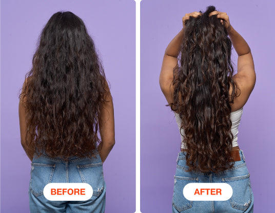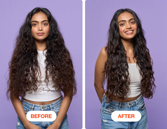 Frizzy hair means dry hair. You can use our multipurpose conditioner (after every wash) and Ultimate Moisture Therapy hair mask or Ultimate Bond Repair therapy for dry curly hair in India once a week. Combine it with a leave-in conditioner or a curl-defining cream for maximum impact.